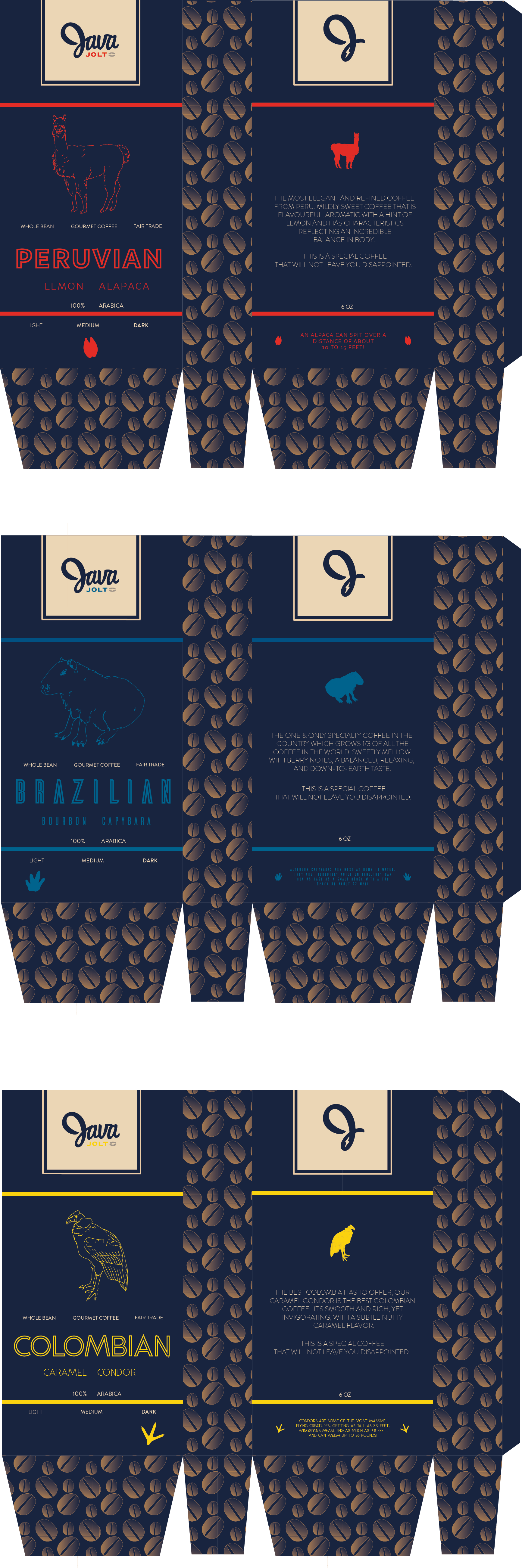 THE THREE DESIGNS ABOVE ARE COFFE PACKAGES I DESIGNED IN HOPES OF THE LOCAL COFFE SHOP TO USE IN THEIR STORE FRONT.